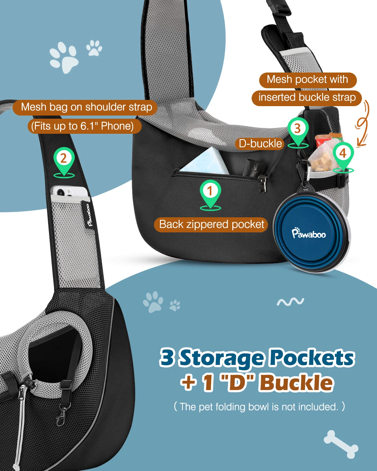 Pawaboo Dog Sling Carrier with Zipper Touch Pocket, Hand Free Breathable Mesh Puppy Carrier, Adjustable Strap for Outdoor Travel