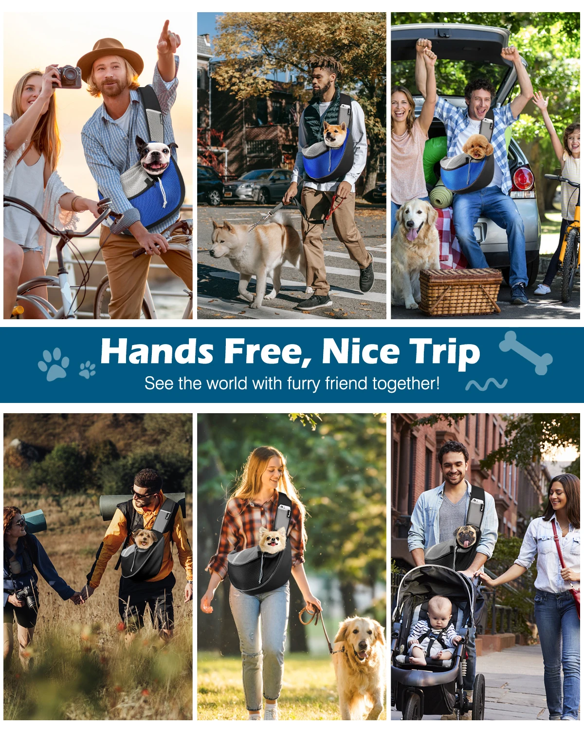Multiple Pockets: Dog carrier sling has zippered pocket on the back that can be used for daily supplies. The shoulder strap side pocket can be used to place mobile phones within 6.1 inches, and the D-buckle can be used to hang foldable bowls, keys, and other small items. With strong storage performance, the dog carrier bag is designed with the right mesh pocket.